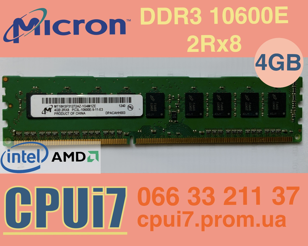 4GB DDR3 1333MHz Micron PC3 10600E 2Rx8 RAM ECC Оперативна пам'ять